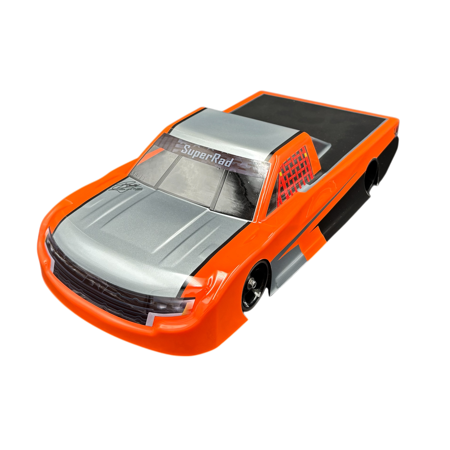 The SuperRad SR-20 SuperTRK12 oval truck body is available in Lite .020” and Heavy .030” polycarbonate for more durability. Includes spoiler, decal sheet, and window masks. Lite version weighs just 52g painted. 2024 and 2025 Snowbirds TQ and Win! TOUR approved.
