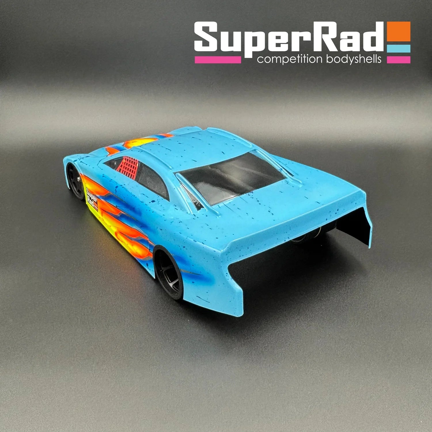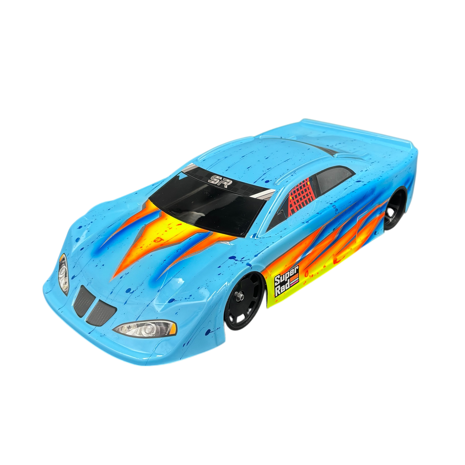 The SR-26 1/10th oval car body includes decal sheet, and window masks. Designed for modern 1/10 oval cars. It features a usable cut line, in contrast to other bodies that need to be cut a half inch higher than their cut line to be made runnable. Made from .015” (SuperLite) and .020” (Lite) polycarbonate. TOUR approved (Pro Stock, Super Stock, Mod). Made in USA.
