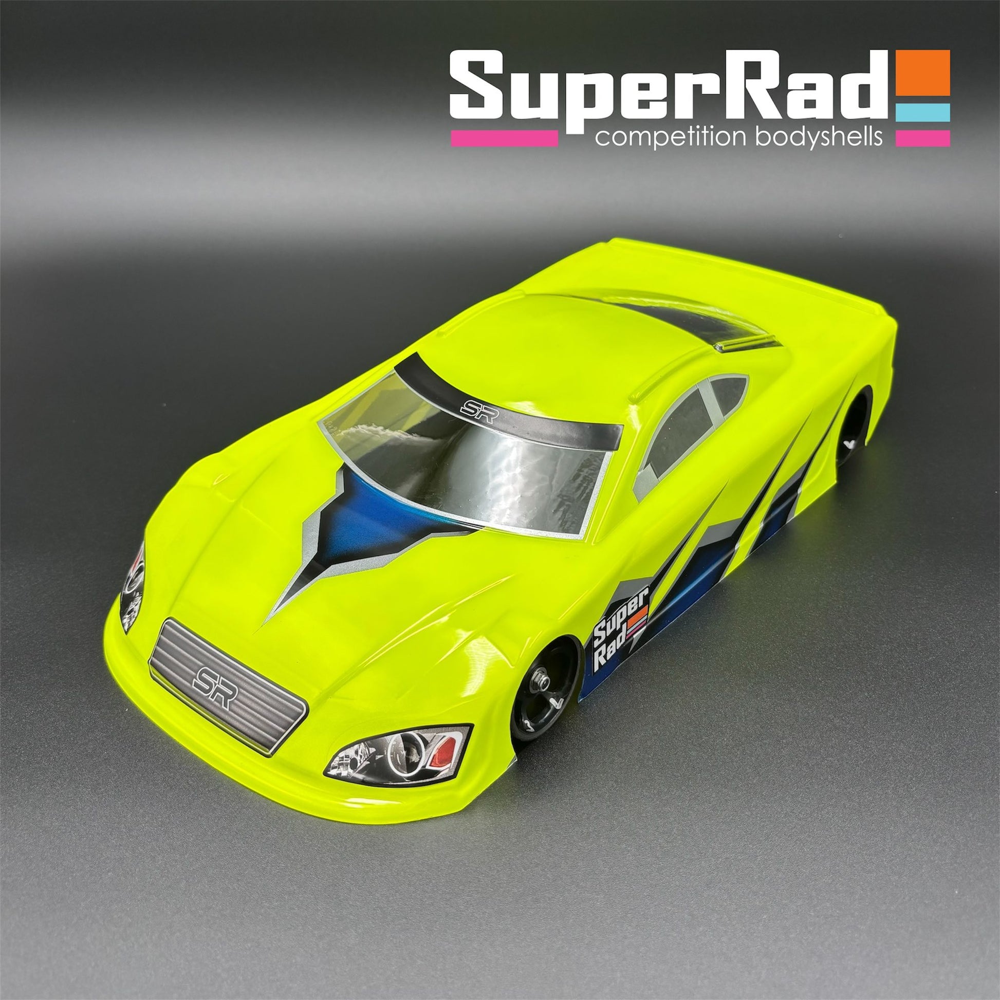 The SuperRad SR-25 oval car body includes decal sheet and window masks. Designed for modern 1/12 oval cars. It features a usable cut line, in contrast to other bodies that need to be cut a half inch higher than their cut line to be made runnable. Made from .030” polycarbonate. TOUR approved.